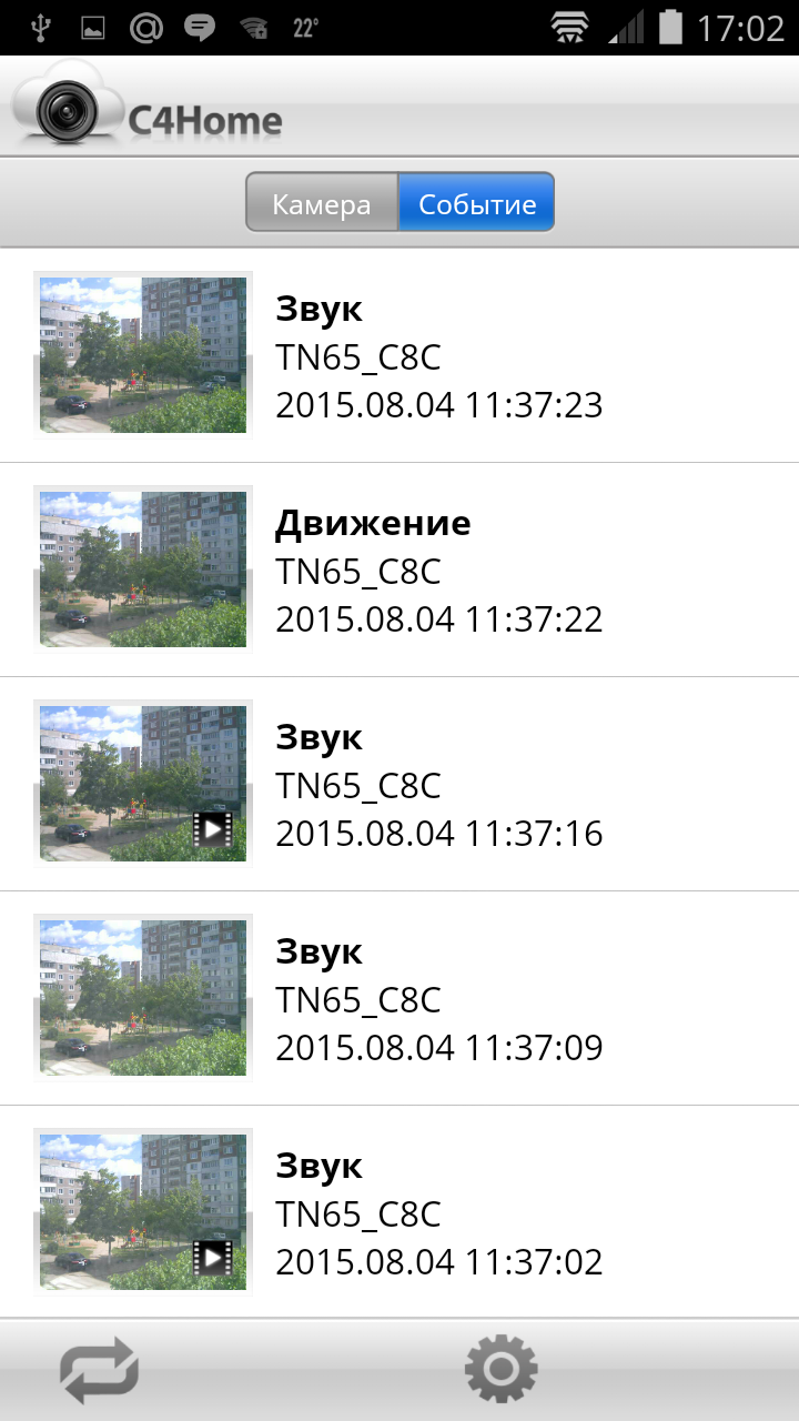 | Активная камера в списке учетной записи | Настройки реакции смартфона, активация сервиса Push-уведомлений о событиях | Имя камеры, пароль для входа, переворот картинки | Настройки видео- и аудиопотока, поступающего в облако и на мобильное устройство |