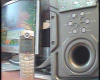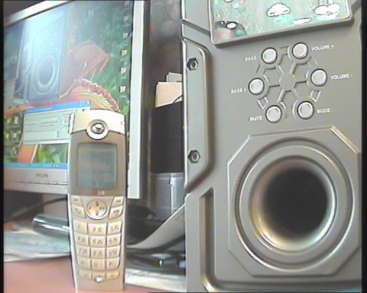 Изображение слева получено при свете обыкновенной лампы, к нему нет никаких замечаний, ощущение такое, что для передачи видеосигнала используется кабель. При выключении света на видеокамере включается ИК-прожектор, и объект наблюдения снова становится видим. На этой видеокамере отсутствует режим "День-Ночь", поэтому в сумерках наблюдаются небольшие, характерные для цветных видеокамер, помехи. Звуковой канал в состоянии передать с нормальным качеством речь неподалеку расположенных собеседников.