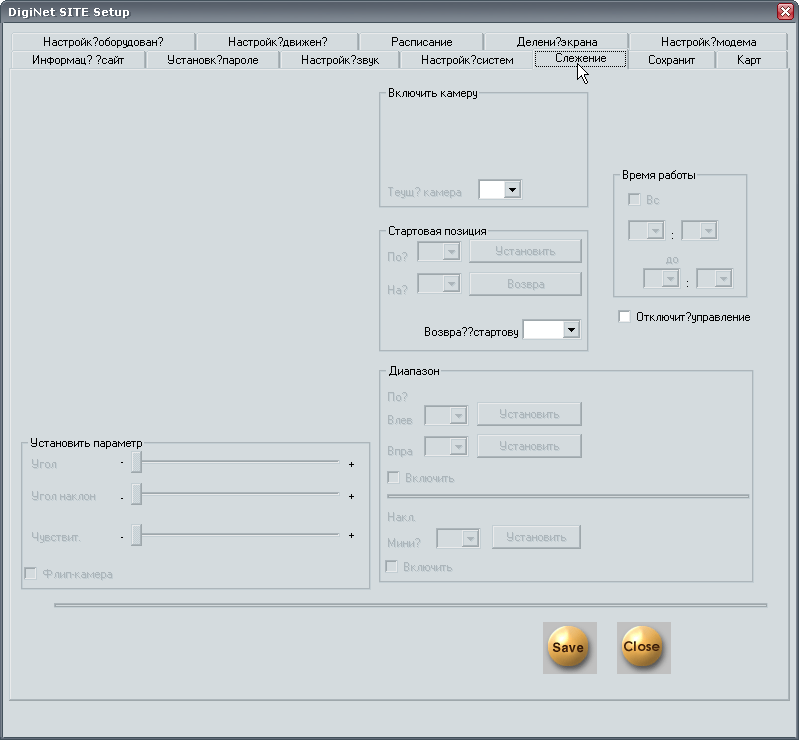 Параметры вкладки Слежение становятся активными и доступными для редактирования в том случае, если ваши камеры — управляемые и имеют "на борту" поворотно-движущую систему.
