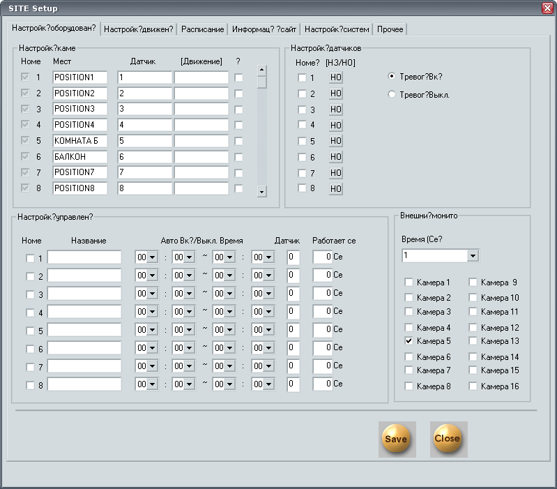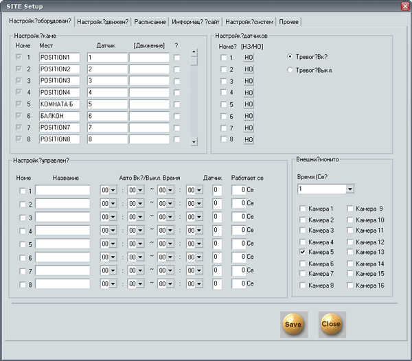 Третье поле, Настройка управления (3), позволяет автоматизировать процесс включения/выключения камер, а также определить, имеются ли у камеры дополнительные датчики. Существует возможность задания времени автоматического включения любой из камер, а также время их отключения. Это может понадобиться в тех случаях, когда, например, по окончании рабочего дня офис пустует, и необходимость вести наблюдение отсутствует, так как все подходы к этому офису уже контролируются другими камерами.