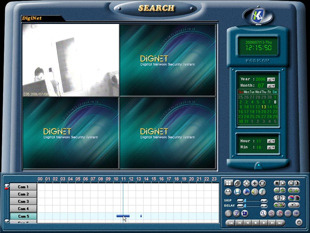 Мы подошли к рассмотрению одной из главных изюминок DigiNet Site — возможности поиска зарегистрированных событий и просмотра записанного видео. Данный режим запускается нажатием на кнопку Search в главном окне работающей программы.