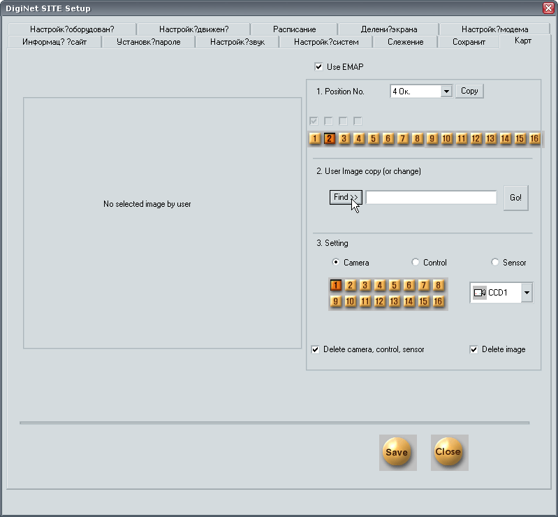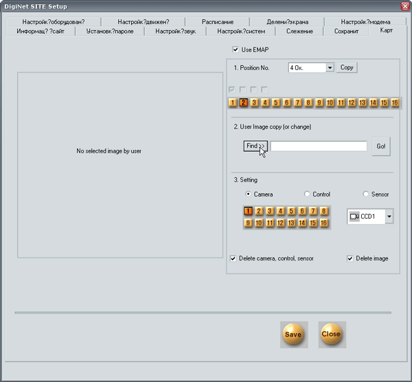 Следующая, последняя вкладка, позволяет вывести на монитор заранее подготовленную растровую картинку, могущую представлять собой схему (карту) размещения камер на объекте.