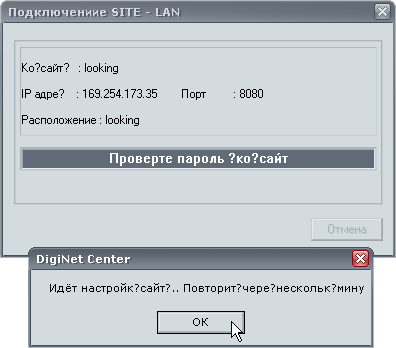 Если подключение не состоялось по причине, отображенной на рисунке далее, знайте: кто-то в данный момент открыл настройки DigiNet Site, к которой вы пытаетесь подключиться.