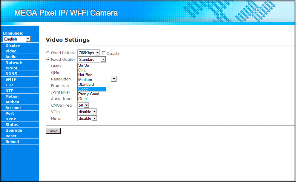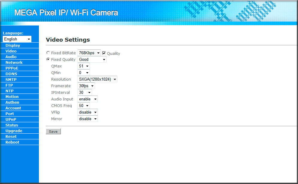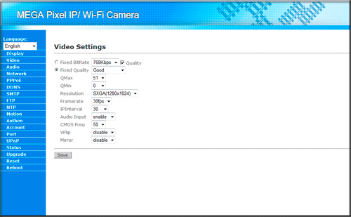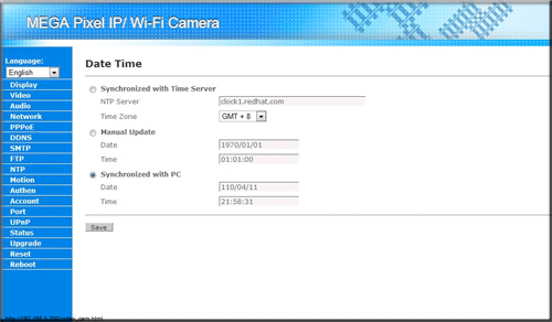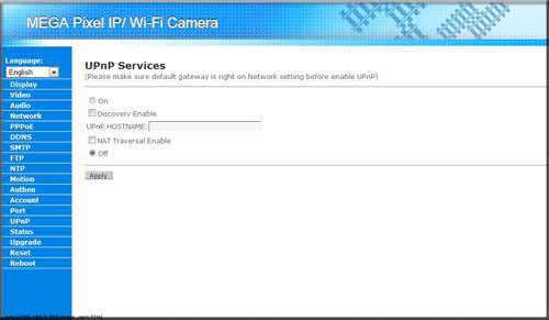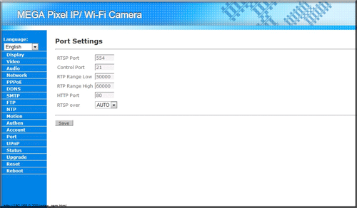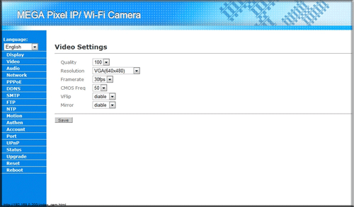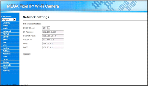 Отметим, что именно эти настройки мы меняли с помощью утилиты «IPCamSetup». Далее идет пункт «PPPoE», позволяющий установить соединение с провайдером; пункт «DDNS», позволяющий подключаться к IP-камере используя только лишь ее имя (при этом неважно, какой будет у нее IP-адрес); «SMTP», предоставляющий возможность отправки уведомления о тревоге на указанный e-mail; «FTP», позволяющий выгружать тревожные фотографии на указанный в настройках FTP-сервер.