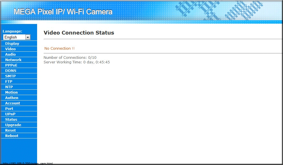 Если нам необходимо знать, кто в данный момент работает с этой IP-камерой (а также, как давно этот кто-то подключен), мы можем заглянуть в пункт «Status»: