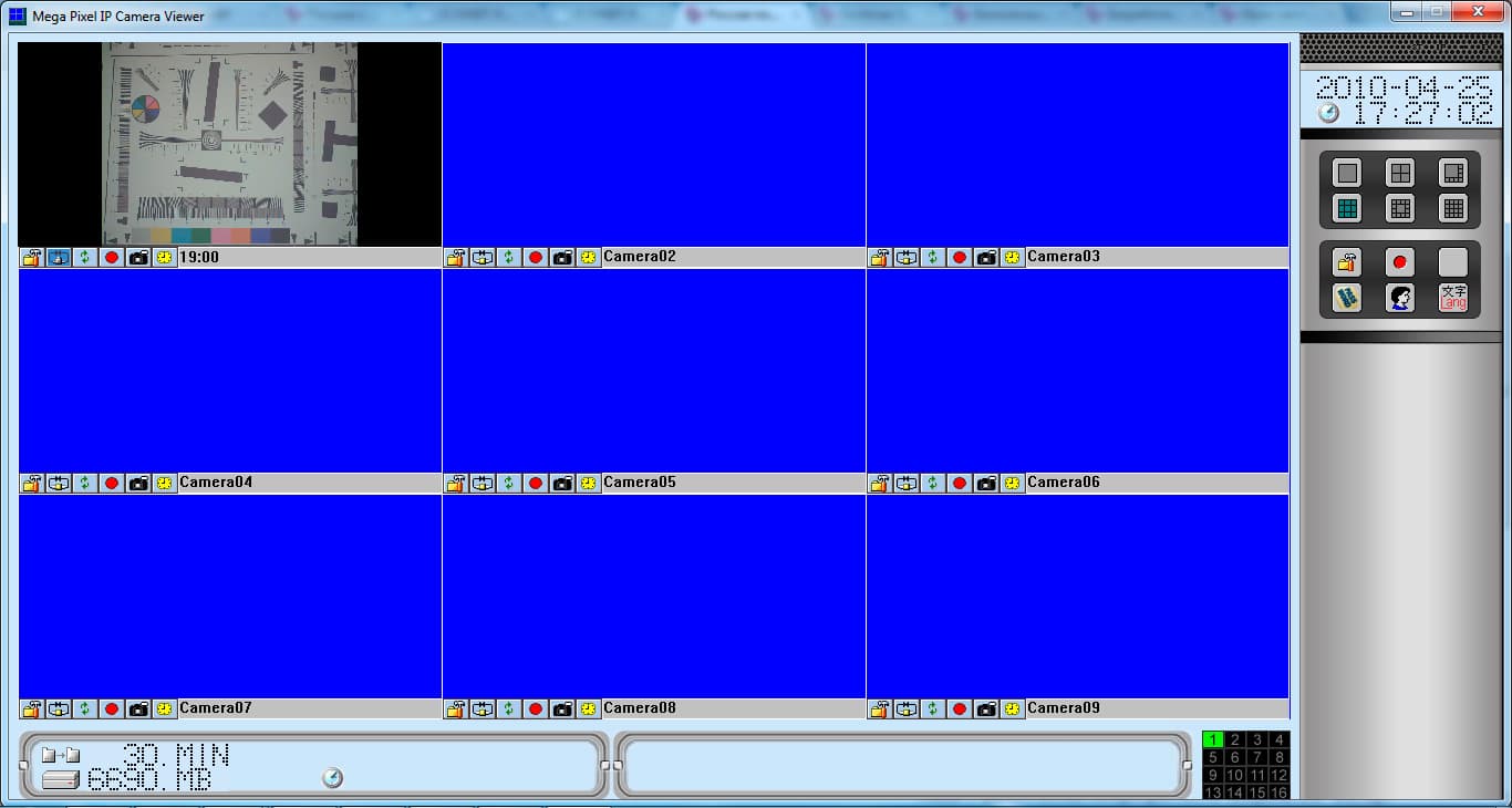 Нам осталось рассмотреть ПО, идущее в комплекте с Grand IP Mеgapixel Camera. Оно устанавливается на ПК под управлением Windows XP (или старше), и позволяет в считанные минуты организовать на базе этого ПК полноценную систему многоканального (до 16 каналов видео включительно) видеонаблюдения. Установка этого ПО не вызывает никаких сложностей, и в результате у вас на рабочем столе появится ярлык «Mega Pixel IP Camera Viewer». Запускаем его и видим следующее: