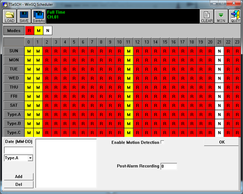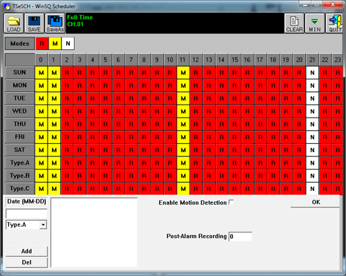 Всё просто: «R» — постоянная запись, «M» — детектор движения, «N» — запись отключена.