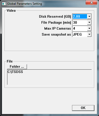 Здесь указываются такие параметры, как резерв свободного места на жестком диске, длительность одного файла, максимальное количество одновременно подключенных IP-камер и формат записи моментальных снимков.