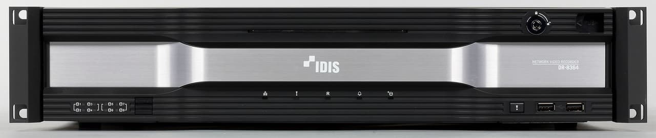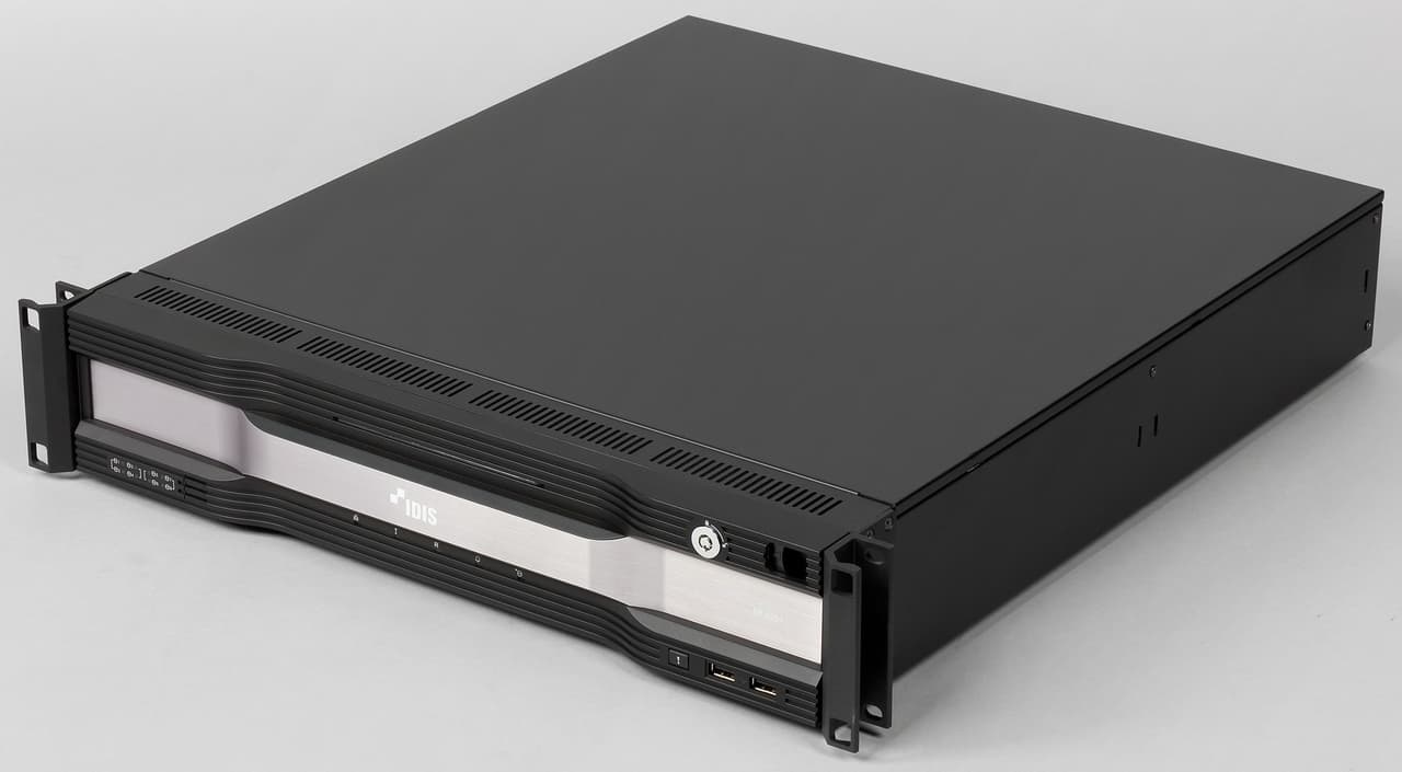 В этом материале мы познакомимся с продуктом совсем другого класса. Видеорегистратор DR-8364 компании Idis из Южной Кореи позиционируется в верхний сегмент. Он поддерживает работу с 64 каналами, оборудован отсеками для восьми винчестеров и портами eSATA, а также способен использовать современный кодек H.265. Из характеристик производительности отметим общий сетевой поток в 900 Мбит/с и интегральные 1920 fps для Full HD как в режиме записи, так и при воспроизведении. Решение работает исключительно с IP-камерами (аналоговые можно подключить через дополнительные энкодеры) и поддерживает фирменную технологию DirectIP, позволяющую упростить сетевую конфигурацию.