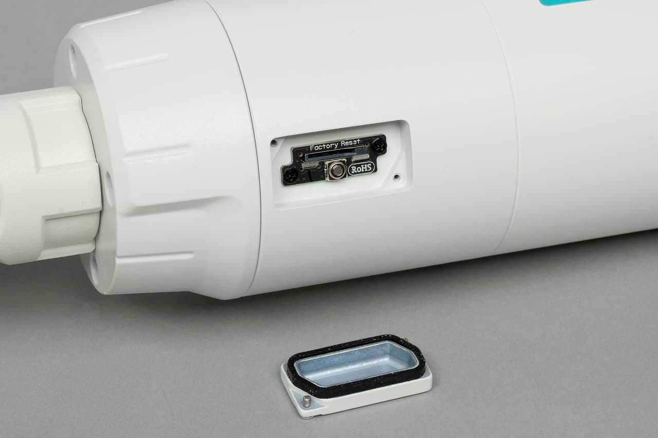 Интересно, что на нем предусмотрено специальное место для установки карты памяти microSD, что позволяет реализовать технологию Edge Recording. Рядом со слотом под защитной крышкой установлена кнопка сброса настроек.