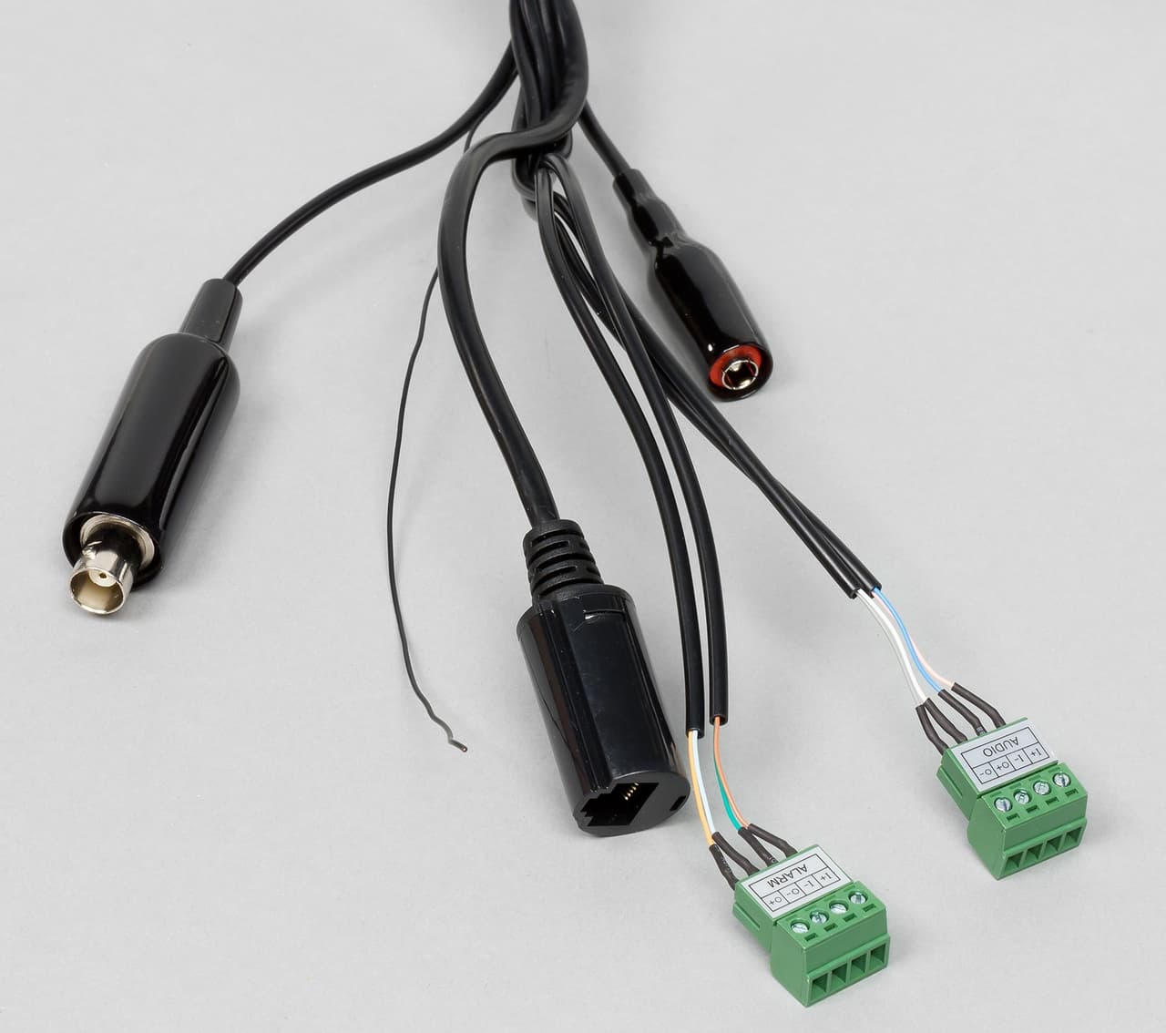 Кроме него в камере есть следующие кабели: сетевой порт с поддержкой питания, отдельный вход питания, выход и вход звука, цифровые вход и выход, отдельный провод заземления.