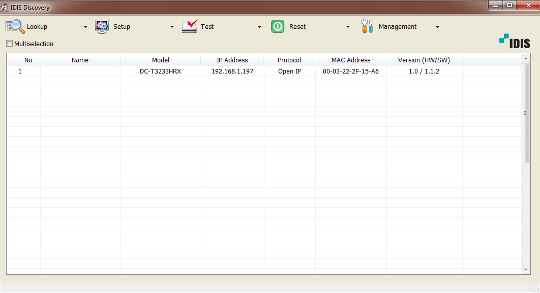 Если же вы планируете использовать продукт с другими системами (например, с программным обеспечением серии Idis Solution Suite) или подключить к регистратору Idis через обычную компьютерную сеть, то требуется сначала переключить режим работы устройства через фирменную Idis Discovery утилиту и установить ему IP-адрес.