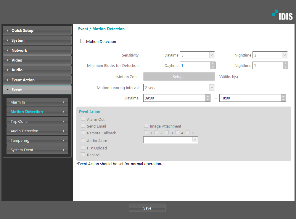 Во многих случаях системы видеонаблюдения также выступают в роли систем безопасности или могут быть их составной частью. В данном решении реализована поддержка нескольких типов событий, востребованных в этом сегменте. Одним из наиболее часто используемых является определение движения в кадре.