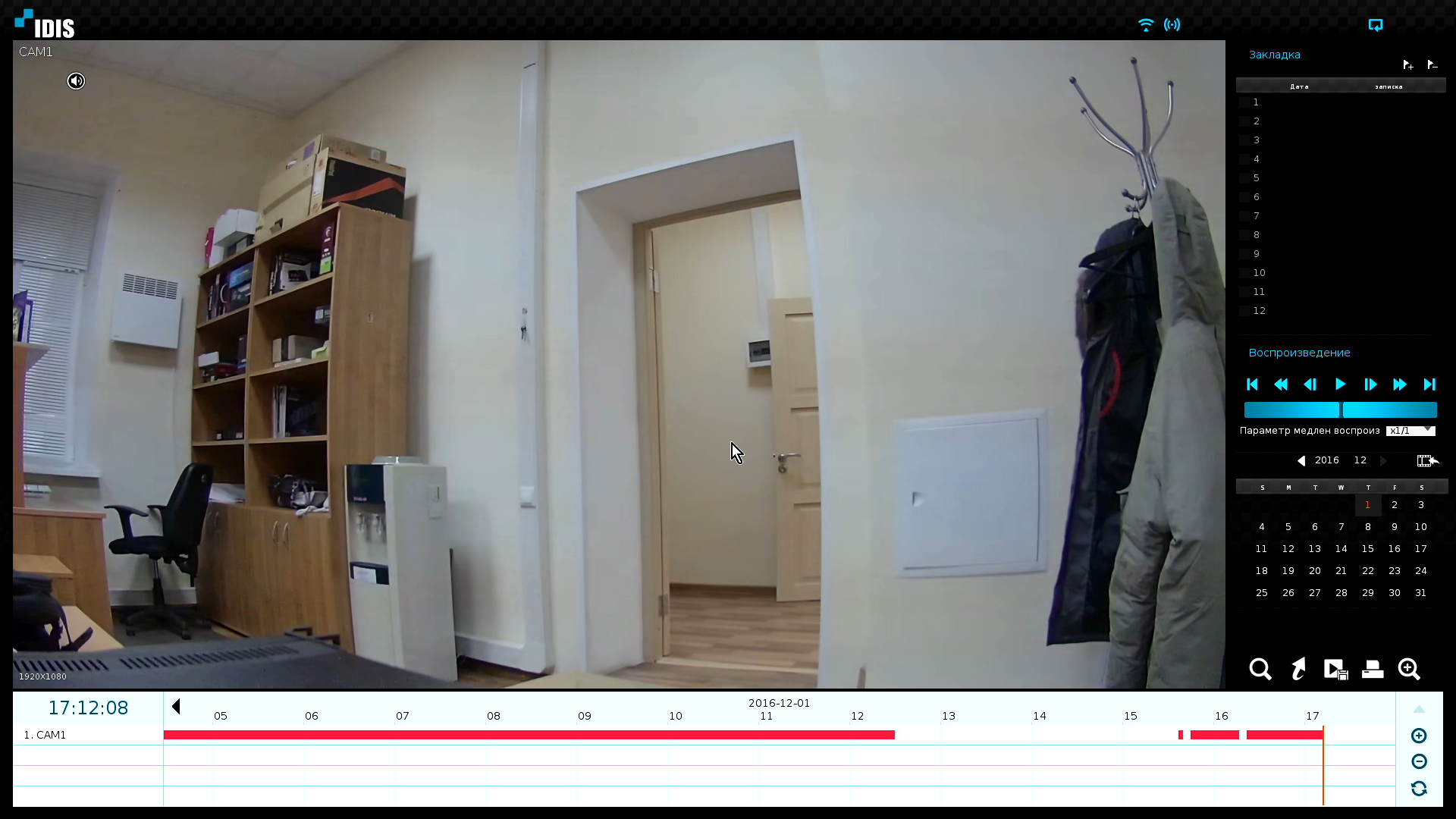 Для просмотра существующих записей можно использовать режим поиска по дате и времени или событиям, а также напрямую обратиться к журналу тревог. Присутствуют функции экспорта данных с камер в файл с автоматической записью на сервер FTP, быстрого или замедленного воспроизведения.