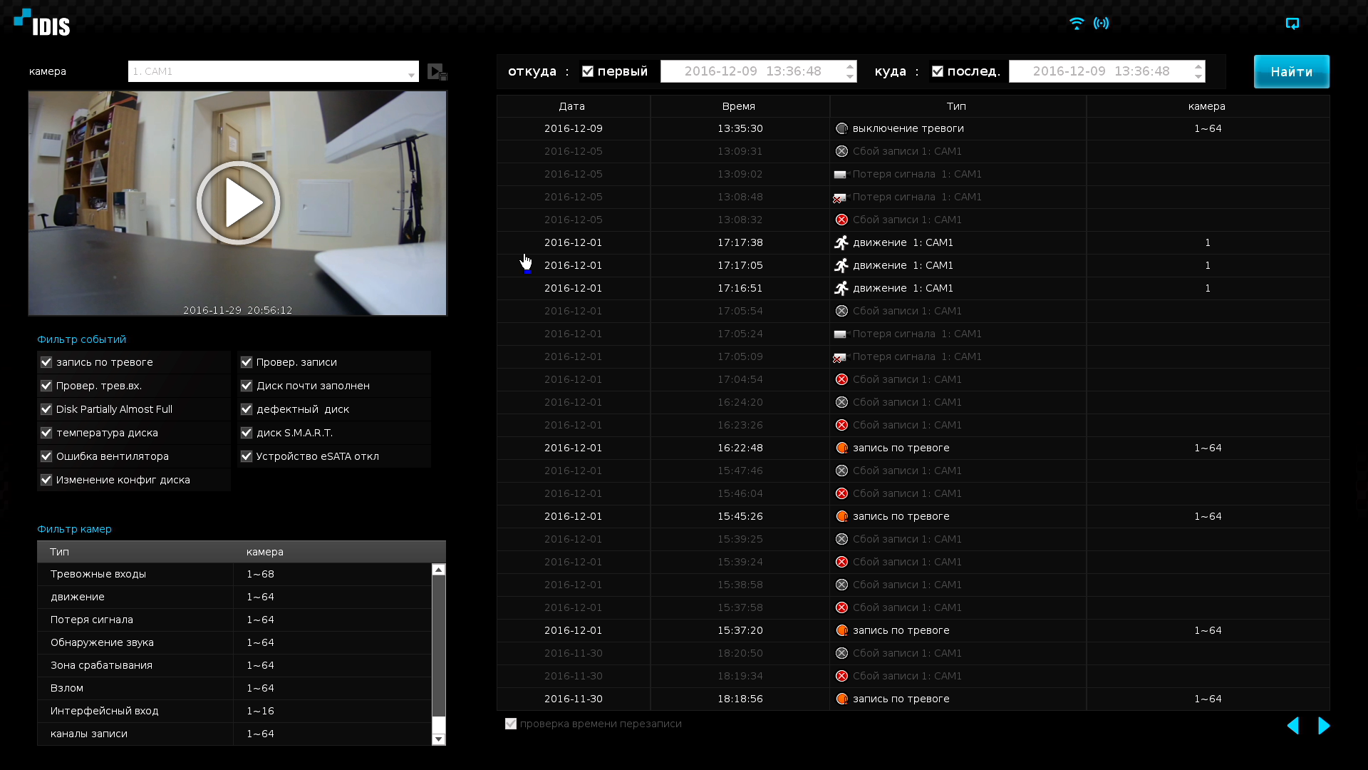 Для крупных систем может быть более удобной работа через программу Idis Center, которая есть в версиях для Windows и OS X. В ней вы можете организовать систему видеонаблюдения, собрав в одном месте информацию сразу с нескольких видеорегистраторов.