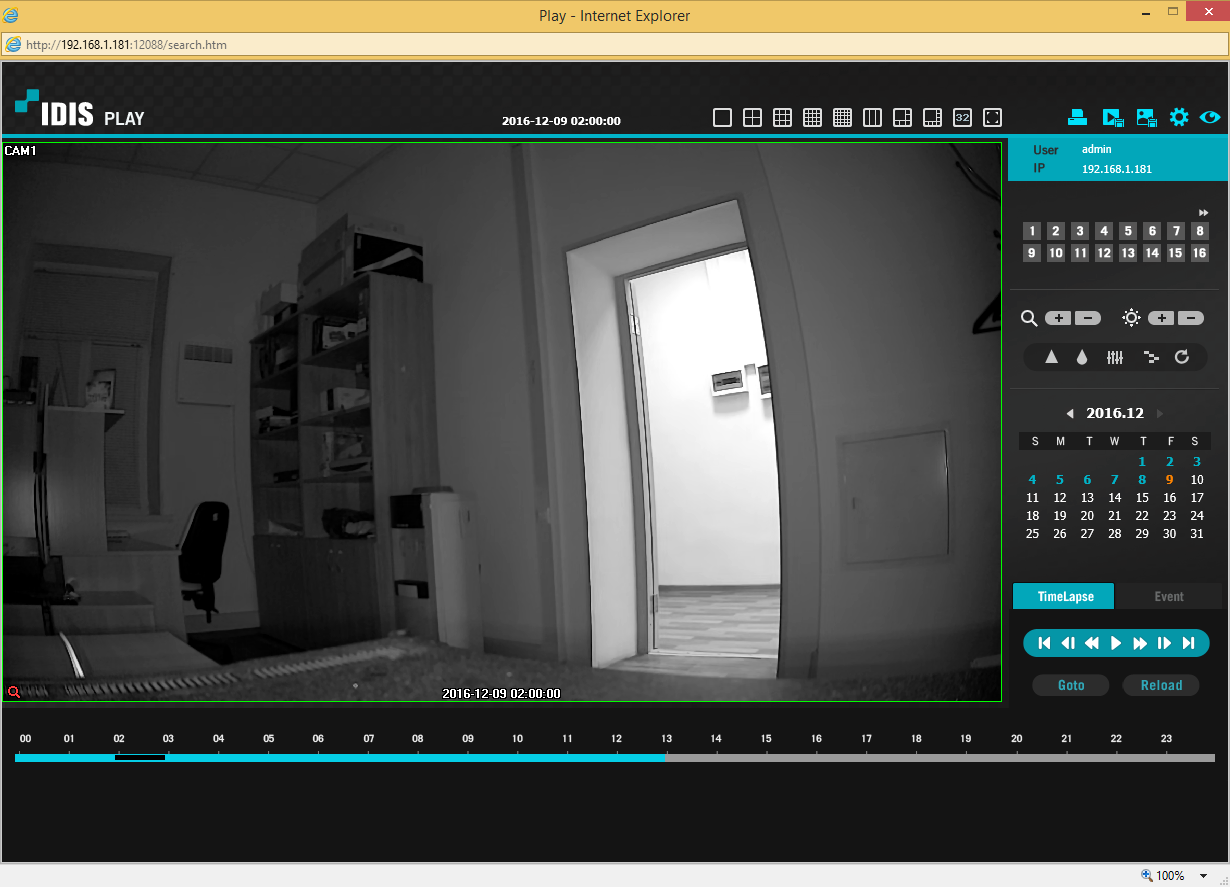 В этом варианте есть два интерфейса — для просмотра живых трансляций и для работы с архивом записей. Во втором случае доступны функции поиска по событиям и навигации на нужный момент времени.