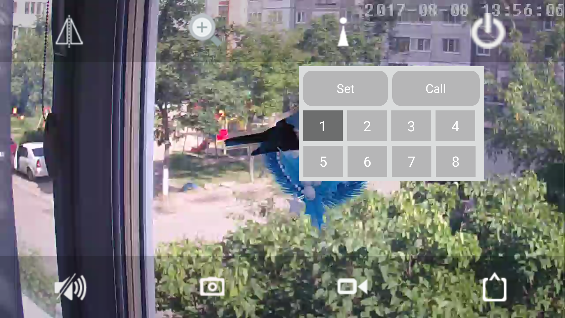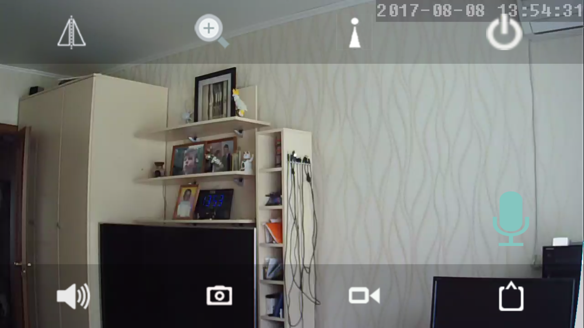 Режим наблюдения в мобильном приложении всегда работает в ландшафтной ориентации. Поверх передающегося с камеры видеопотока могут отображаться кнопки-пиктограммы, необходимые для вызова некоторых функций.