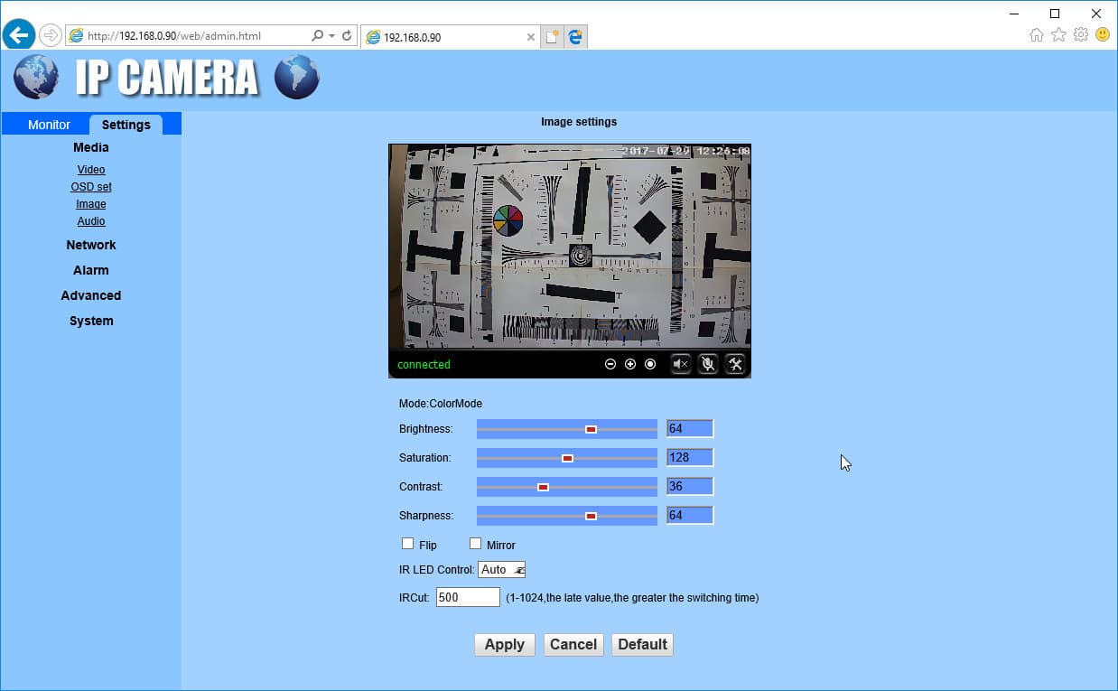 Хороший производитель всегда старается выставить заводские настройки так, чтобы они оказались оптимальными для большинства пользователей. Такое правило действует и в нашей камере, но возможны ситуации, когда пользователю требуется переиначить функциональность: изменить характер картинки, технические параметры видеопотока, сетевой адрес, порт и прочие характеристики соединения.