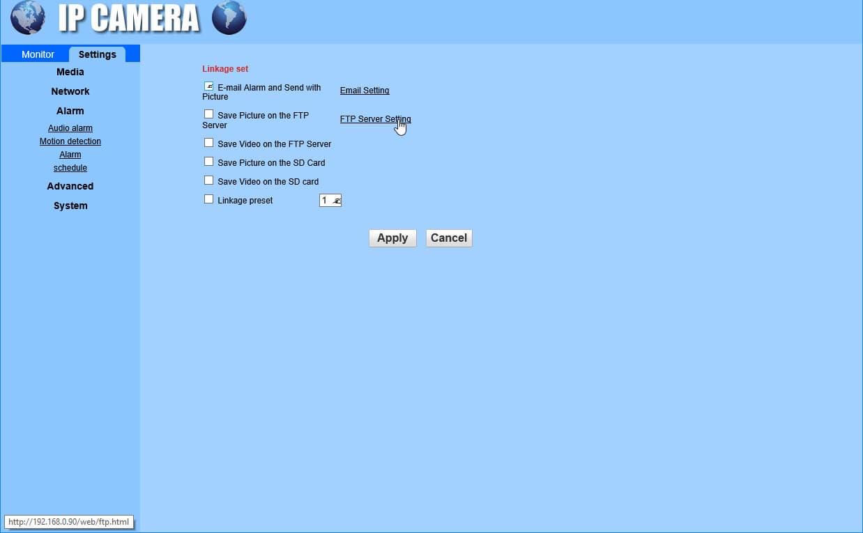 | Настройки чувствительности микрофона и громкости динамика | Настройки параметров видеопотока | Настройки почтового сервера для отправки «тревожных» сообщений и снимков | Настройки FTP-сервера для отправки «тревожных» снимков и видеороликов |