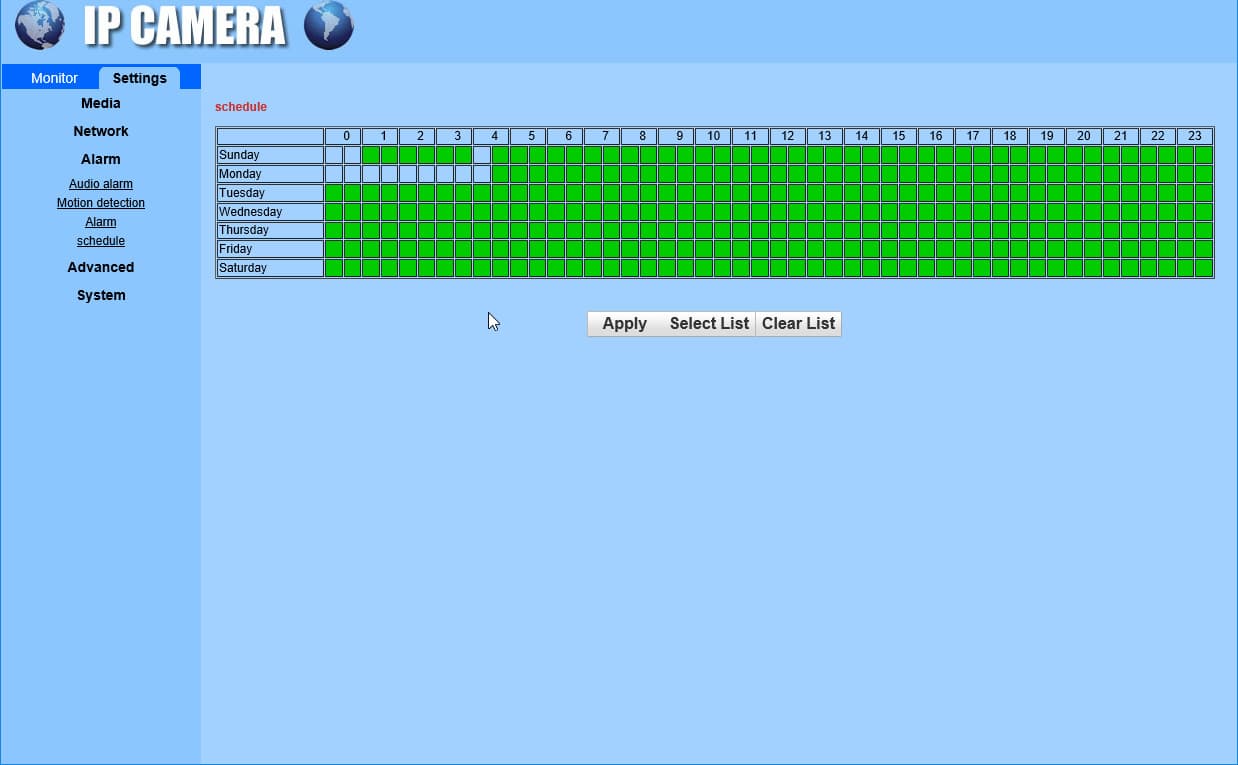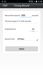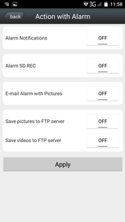 | Библиотека настроек | Настройки поведения по тревоге: отправка на смартфон Push-сообщений, запись на карту памяти, отсылка на E-Mail или FTP | Настройка длительности постоянной записи (режим записи по кругу) | |