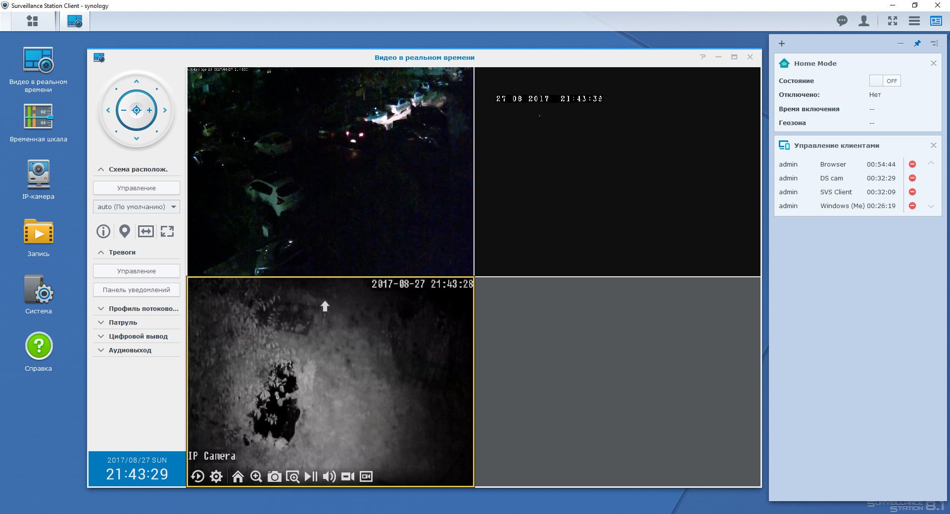 Программных инструментов для ПК, с помощью которых строятся системы видеонаблюдения, нынче огромное количество, включая даже бесплатные — только выбирай. Но имеются и готовые программно-аппаратные решения, часто популярные в домашних хозяйствах и позволяющие соорудить на их базе домашнюю систему видеонаблюдения. Например, известное оборудование бренда Synology.