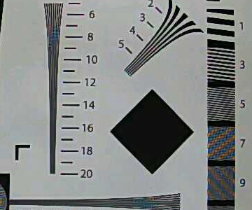 Так оно и случилось! Дешевенький экземпляр с несомненно скромной оптикой и мелким мегапиксельным датчиком уверенно предоставляет 600 ТВ-линий по горизонтальной стороне кадра. С большой натяжкой можно увидеть и все 700 линий, однако этому мешает грубоватый характер программного изменения размера кадра, получающегося при съемке.