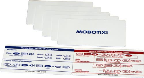 По окончании этого этапа настройки вы увидите веселые перемигивания различных светодиодов панели. Это будет означать, что настало время второго этапа — ввода в Mobotix T24 Starter Kit мастер-кода (имеется ввиду PIN-код). Он должен иметь длину от 8 до 16 символов и по завершении конфигурации храниться в надежном и недоступном для злоумышленников месте. После ввода мастер-кода вы снова увидите веселые перемигивания различных светодиодов панели. Это будет сигналом к переходу к третьему этапу конфигурирования — настройке беспроводных RFID-карт. Из комплекта карт выберите карту красного цвета, поднесите ее к модулю клавиатуры и подержите ее возле модуля примерно 5 секунд. Как только вы услышите звуковой сигнал — мастер-карта определена. И далее вы сможете с ее помощью добавлять или удалять любое количество пользовательских RFID-карт, тем самым регламентируя доступ.