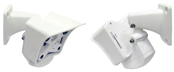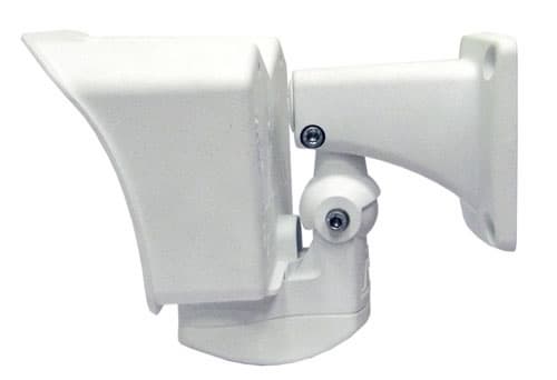 Вид сбоку не предвещает ничего необычного — стандартный козырек, продуманное поворотное крепление. Аппарат изготовлен из прочной серо-белой пластмассы, содержащей 30% фиберглассовых волокон и имеющей вкрапления серо-голубого оттенка. Эта пластмасса используется в автомобильной индустрии, и прекрасно зарекомендовала себя при эксплуатации в условиях высоких температур и агрессивных сред. В связи с этим примечателен температурный диапазон работы камеры: от -30 до +60 градусов Цельсия.
