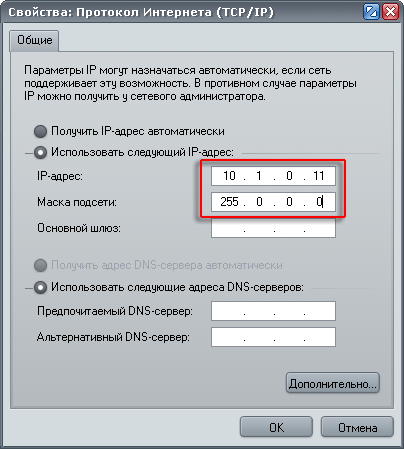 Во-первых, необходимо прописать в настройках TCP/IP следующий адрес: