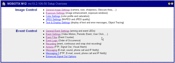 Но камера умеет "бить тревогу" не только при помощи детектора движения. К услугам пользователя микрофон, инфракрасный датчик, встроенный температурный датчик — все эти модули точно так же заставляют камеру реагировать и начинать запись при шуме (уровень его, конечно же, настраивается), изменении освещенности, превышении порога допустимой температуры. Кстати, когда мы говорим "бить тревогу", следует иметь в виду не только банальную запись видео, но реакцию камеры вообще, ведь действие аппарата на тот или иной раздражитель может быть любым. К примеру, камера может оповестить о тревоге по телефону, E-Mail, FTP, VoIP(!) или просто послав удаленному ПК заранее определенное "Hello World" с помощью TCP/IP. Наконец, нельзя забывать о способности аппарата управлять цифровым домом (при наличии подключения через блок расширения Mobotix Cam-IO). Простейший пример: в помещении, где установлена камера, упала температура или стало слишком темно. Не беда — аппарат подаст нужный сигнал блоку расширения, а тот, в свою очередь, включит отопление и свет (повторяем, все эти функции вполне реальны и доступны при условии установки дополнительных специальных устройств). Более того, с помощью все того же блока камера способна обрабатывать сигналы, идущие от внешних устройств, каковыми могут быть также различные датчики, расположенные по всему дому!