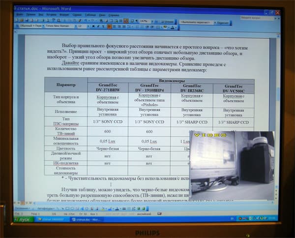 Давайте сравним имеющиеся в наличии видеокамеры. Сравнение проведем с использованием ранее рассмотренной таблицы с параметрами видеокамер: