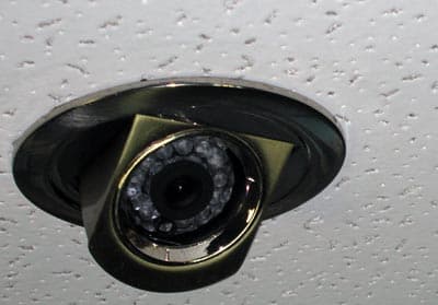 Данная видеокамера имеет интересную особенность — она спроектирована таким образом, что ее монтаж можно проводить прямо в навесной потолок. Собственно, только так его и нужно проводить. Вот фото смонтированной надлежащим образом видеокамеры: