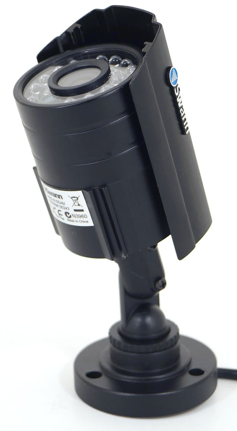 Корпус камеры Swann Pro-510 изготовлен из алюминия и покрыт защитной черной краской. Вокруг стекла объектива расположены 24 инфракрасных диода, обеспечивающих работу камеры при отсутствии освещения. Сдвигающийся вперед/назад козырек можно разместить на любой стороне камеры — верхней или нижней (данная метаморфоза может оказаться необходимой при установке ). Камера крепится к поворотной платформе болтом, фиксирующим наклон. В свою очередь, платформа привинчивается к какому-либо неподвижному основанию: стене, потолку.