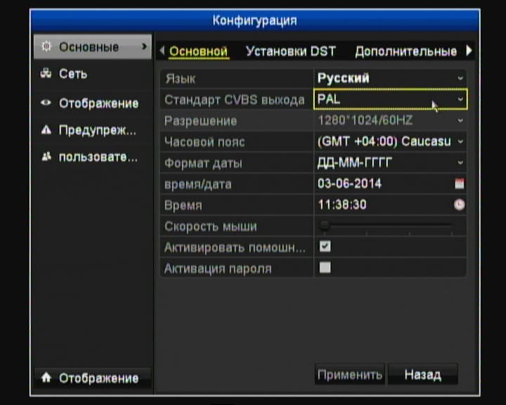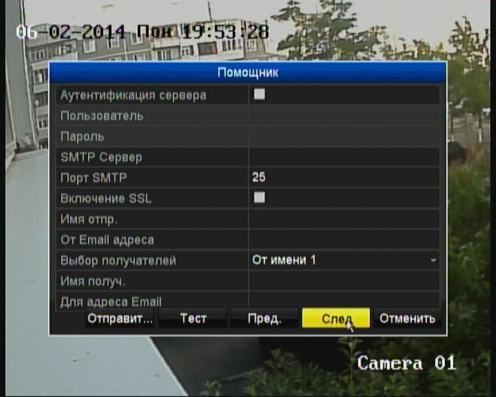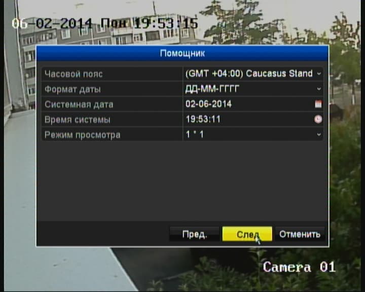 При первом запуске системы на экране подключенного телевизора пользователь увидит пошаговый мастер настройки. Здесь можно выбрать язык системы, активировать запуск этого помощника каждый раз при загрузке комплекса, сменить пароль администратора, установить дату/время с выбором часового пояса, настроить локальную сеть и SMTP-сервер для отправки электронных писем на указанный адрес (это понадобится для отсылки тревожных оповещений), и, наконец, инициализировать новый жесткий диск. Все эти настройки можно вызвать и позднее, а данный мастер можно просто закрыть.
