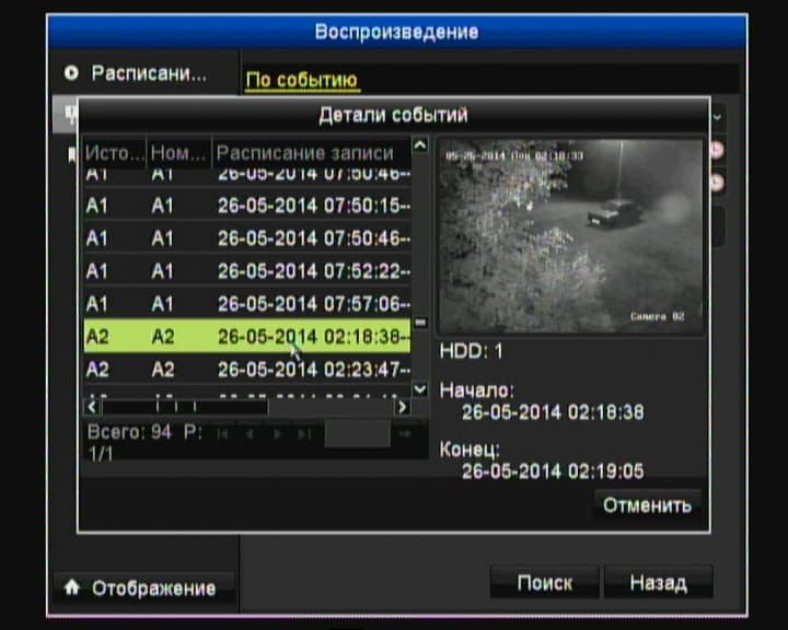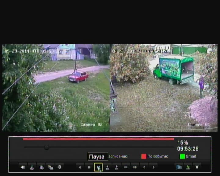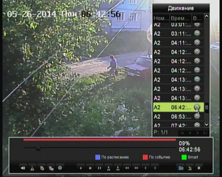 | Просмотр записей, сделанных по расписанию, которое задается в настройках | Просмотр записей, сделанных вследствие срабатывания датчика движения или иного типа тревоги |