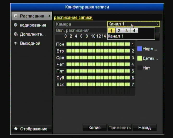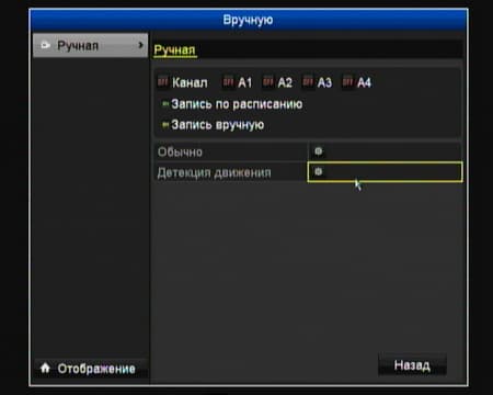 В пункте, имеющем лаконичное название Вручную, принудительно включается запись с выбранных камер, также здесь отображается текущий статус каналов.
