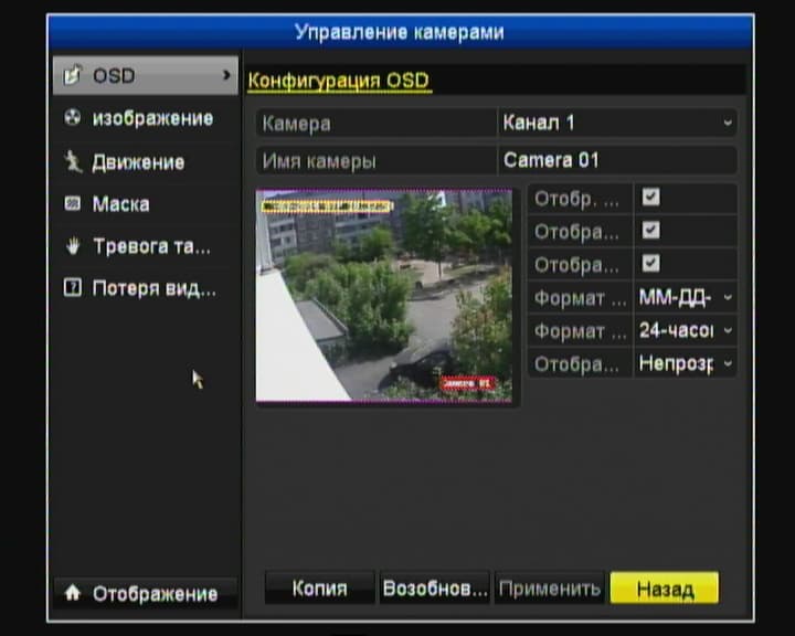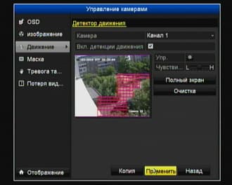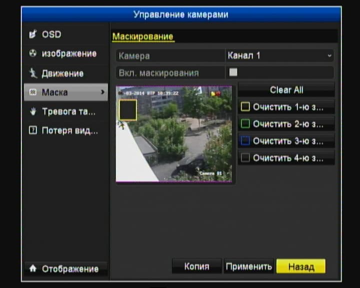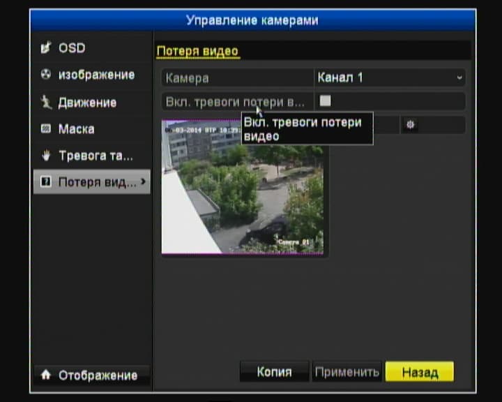 Нужно отметить кнопку Копия — этот инструмент появляется в некоторых пунктах настроек системы. Данная кнопка позволяет скопировать в буфер настроенные параметры камеры с тем, чтобы быстро присвоить их любой другой камере. Таким образом, исключается необходимость обязательной настройки каждой камеры в отдельности.