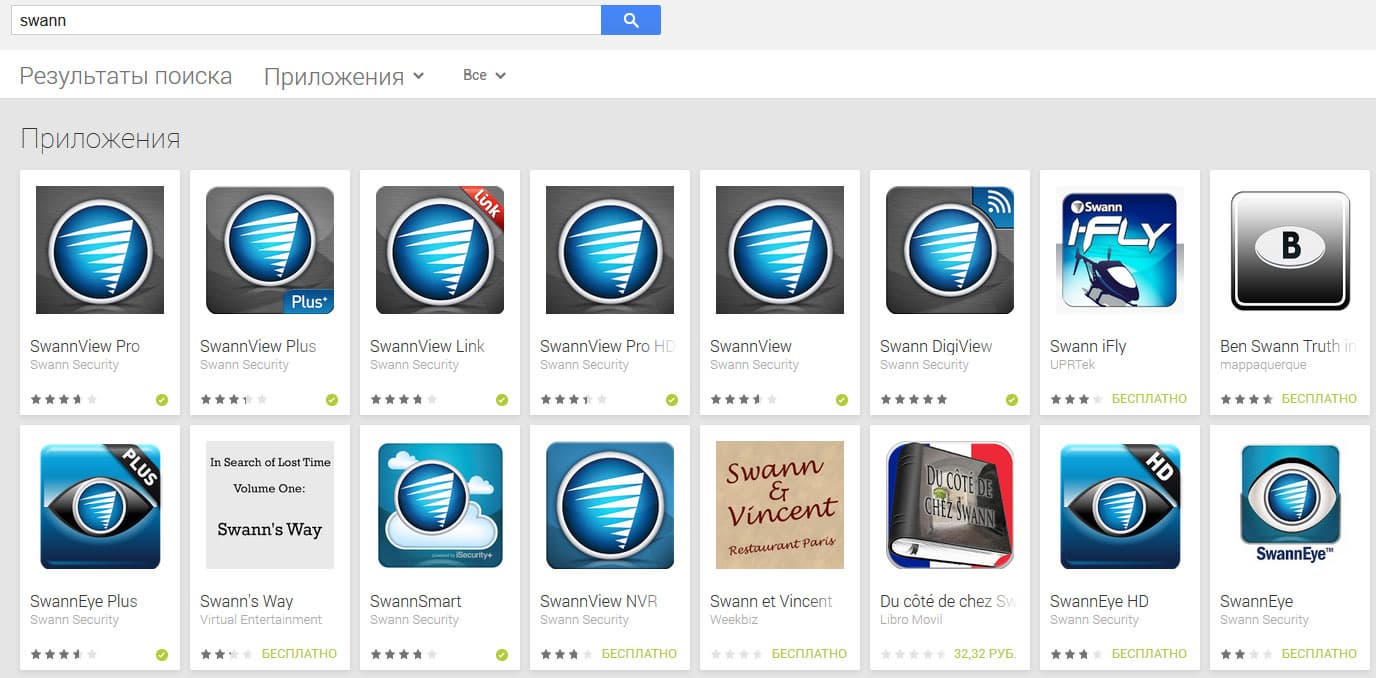 В заключение практической главы рассмотрим вопрос удаленного наблюдения и управления комплексом посредством мобильных устройств. Наверное, эта тема является сегодня животрепещущей для каждого производителя различных — редкий из них пренебрежет функцией связи гаджета с мобильным устройством через интернет. Компания Swann в этом плане не отстает от других. А то и наоборот: если судить по количеству разномастных фирменных приложений, имеющихся в Play Google, не только не отстает, а очень даже обгоняет (аналогичный список можно найти и в App Store).