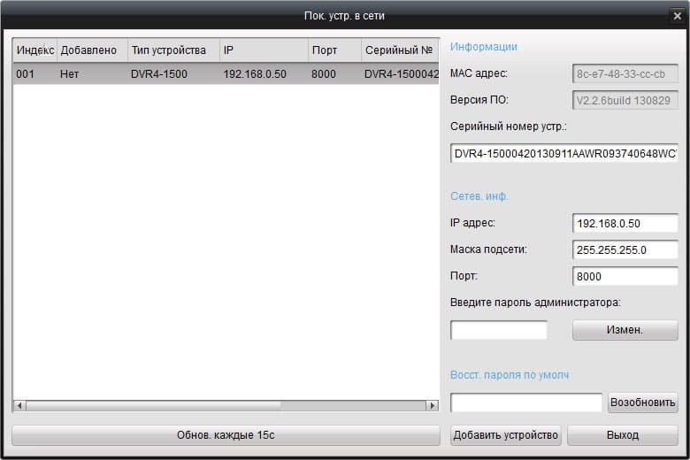 При первом запуске основного приложения, имеющего название SwannView Plus Client, следует добавить в программу наш комплекс. Который, разумеется, в это время должен работать и быть подключенным к той же сети, что и ПК. Отыскать нашу систему наблюдения в локальной сети поможет мастер настройки: