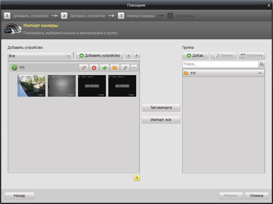 После того, как комплекс добавлен, пользователь имеет возможность добавить на главный экран приложения только нужные камеры. В нашем случае это те две, которые подключены к системе.