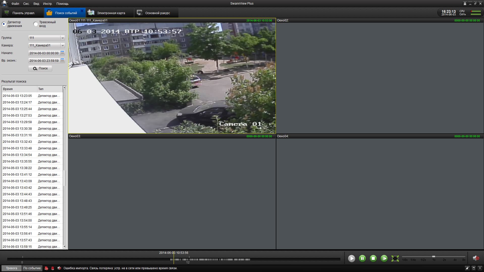 Поиск событий работает так же шустро, как и во встроенном программном обеспечении комплекса при просмотре на телевизоре. Список воспроизведения, расположенный в левой панели главного программного окна, помогает найти нужное событие и в считанные секунды воспроизвести его.
