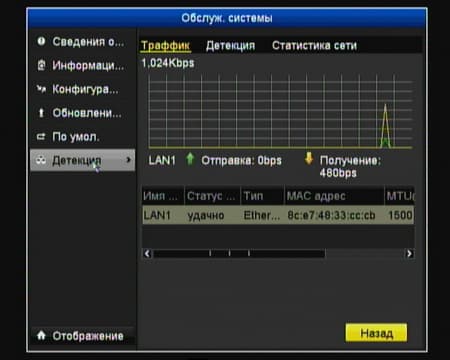 Предпоследний пункт выполняет чисто информационную функцию. Здесь выводятся сведения о текущем состоянии комплекса, такие, как общие сведения о системе, статусе подключенных камер, настройках сетевого соединения, состоянии жесткого диска. Также в данном пункте имеется возможность экспортировать записи журнала событий, сохранить или загрузить настройки комплекса посредством копирования или восстановления конфигурационного файла, обновить встроенное программное обеспечение, откатить настройки к заводским.