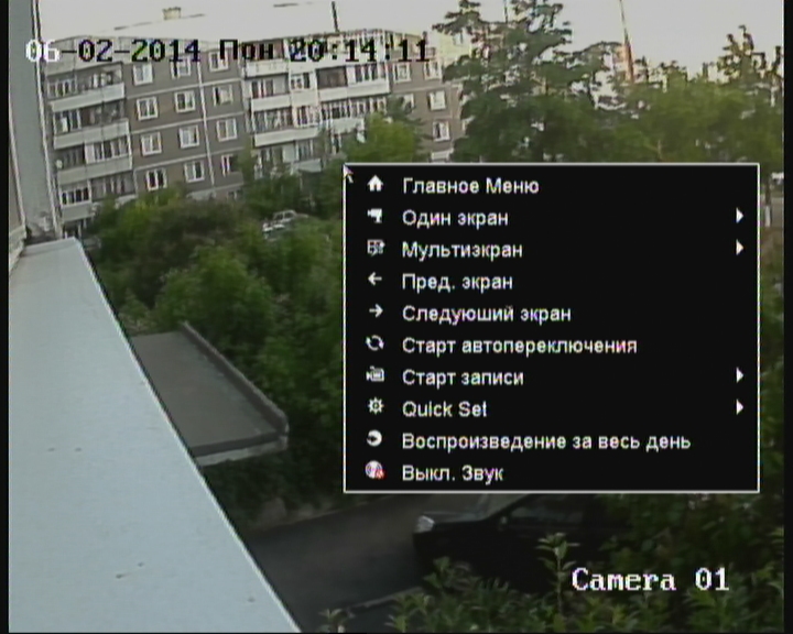 По умолчанию система выводит на экран телевизора картинку с первой подключенной камеры. Для того, чтобы переключиться в многокамерный режим, нужно вызвать контекстное меню. Делается это правой кнопкой мыши, как в обычном ПК.