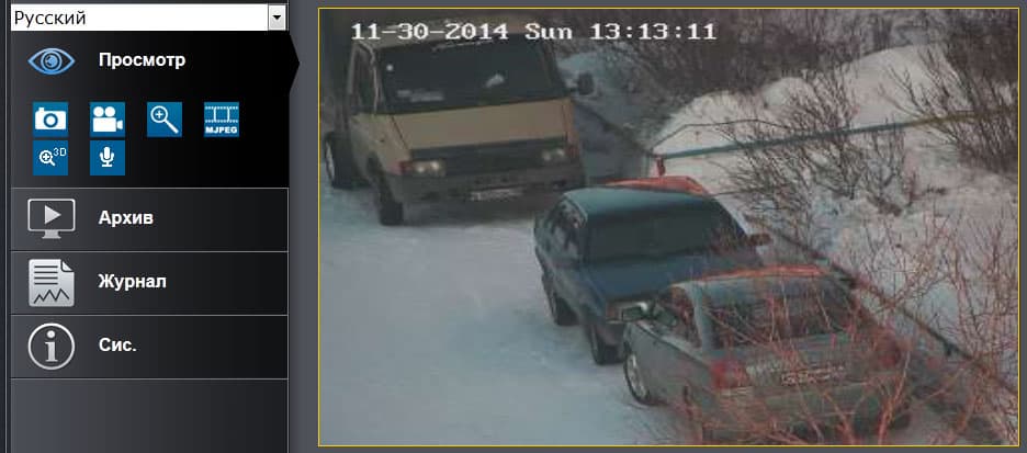 После авторизации на веб-сервере IP-камеры происходит переход в главное окно интерфейса: