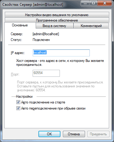 | В этом окне указываются адрес и порт подключения: | Особый интерес представляет вкладка «Настройки видеовещания по умолчанию», вот они: |