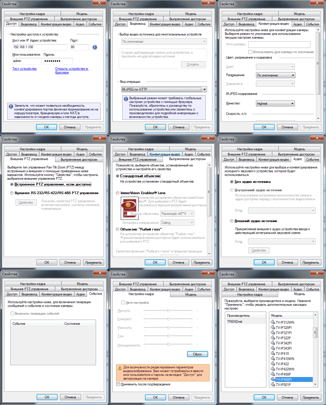 И снова — масса настроек. Настройки видео- и аудиопотоков, настройки сжатия, коррекция дисторсии, настройка PTZ — это далеко не весь перечень возможностей. Заглянем в настройки самой программы: