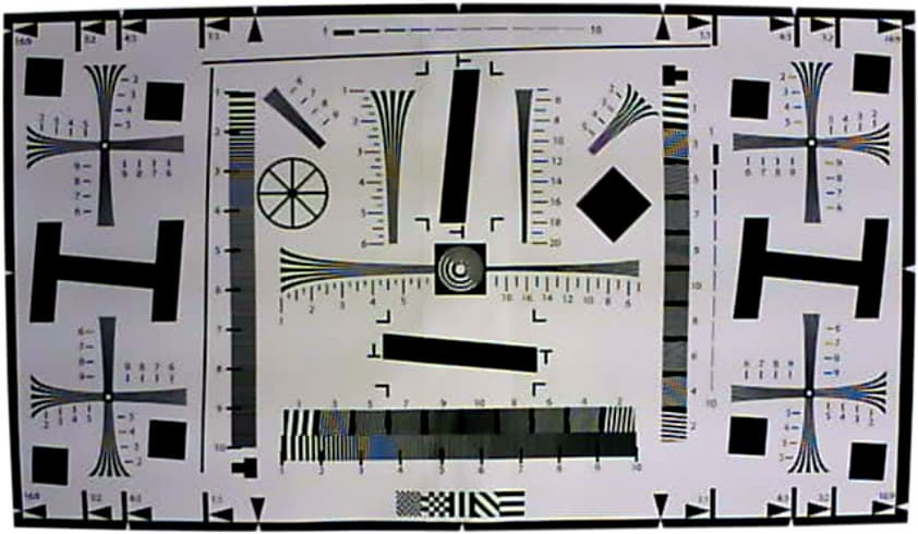 Оценить фактическую разрешающую способность камеры мы не смогли: чтобы имеющаяся тестовая таблица формата А3 заняла бо́льшую часть кадра, пришлось придвинуть камеру на расстояние немногим более полуметра, и сфокусировать изображение не удавалось.