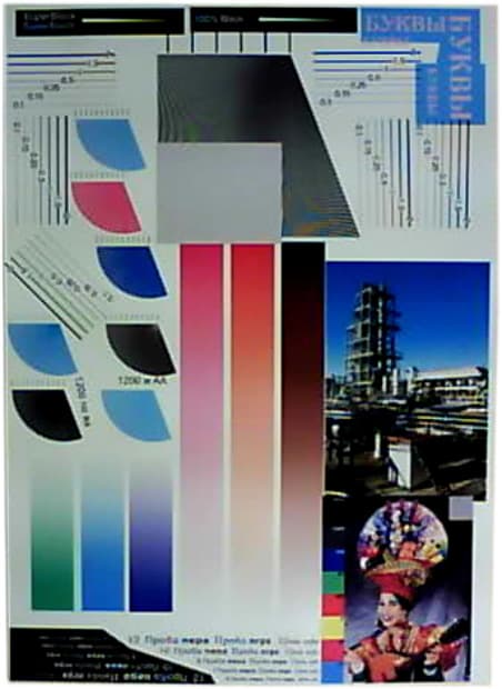 Цветопередачу можно оценить по следующему тестовому листу (проблема с фокусировкой та же):