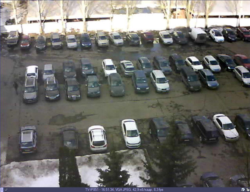 Заметим: при задании малых степеней сжатия, т.е. максимального качества, происходит ограничение частоты кадров — даже если в настройках камеры задать 20 кадров в секунду, то реальная частота не превышает 15 fps, и движение объектов становится заметно прерывистым, хотя и остается именно движением, а не скачками по кадру. Если для того же сюжета задать более высокое сжатие или понизить разрешение, частота кадров увеличивается до 19-20 fps. Если же движения в кадре нет, то при малом разрешении или высоком сжатии частота кадров может увеличиться до 30 fps (по крайней мере, так рапортует SecurView Pro). Очевидно, таковы особенности кодека камеры.