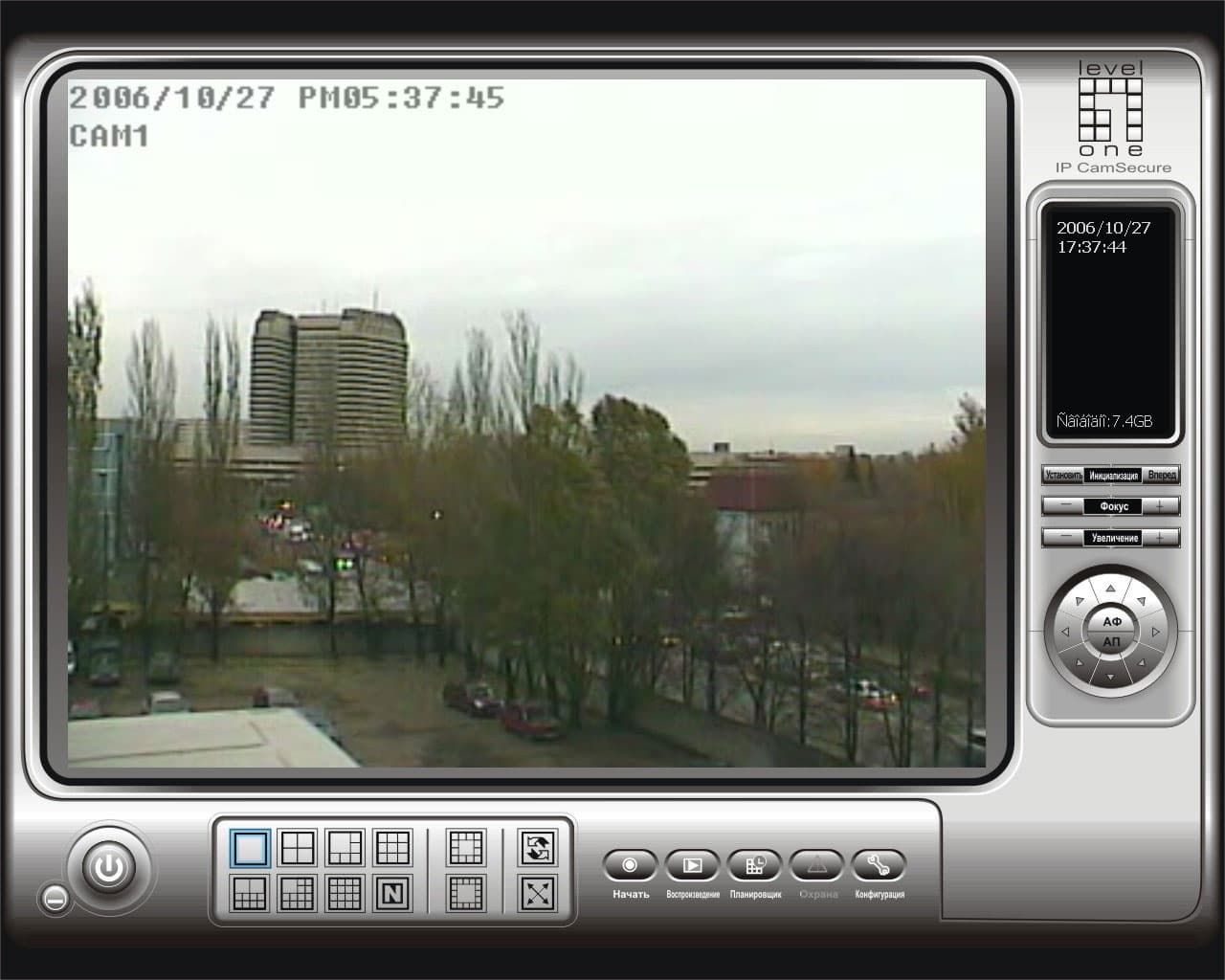 Программа, которую мы рассмотрим называется громким именем "Main Console". Данная программа позволяет принимать изображение сразу с 32-х камер LevelOne и осуществлять запись, а также при необходимости запускает другие программы. IP-адрес камеры для работы с ней должен быть известен - после добавления камеры в список, главный интерфейс программы выглядит так показано на скриншоте ниже (жаль что день был непогожий):